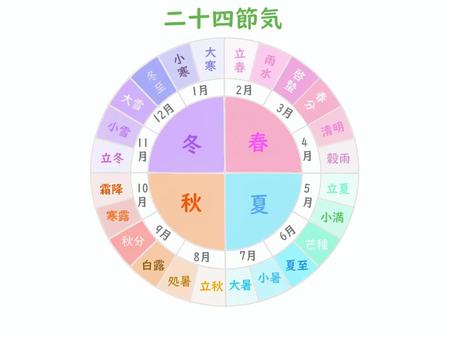1年を太陽の動きに基づき24等分し、それぞれに季節を表す名前をつけた暦の仕組み